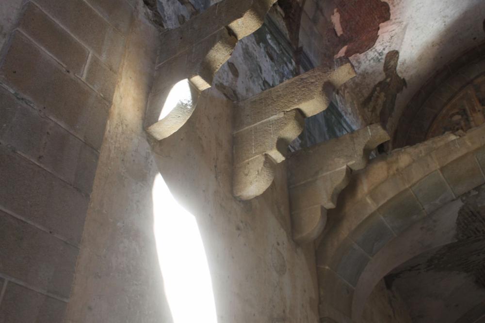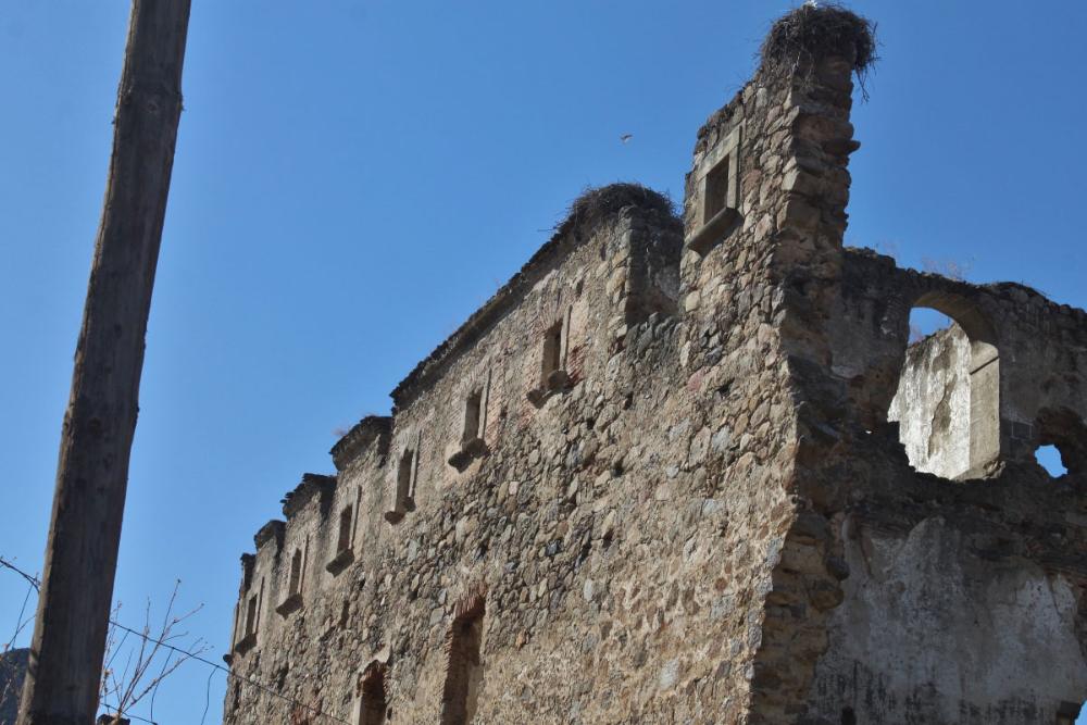 Todavía se ven algunos restos de hornos, chimeneas... Casi todos los ornamentos están arrancados.