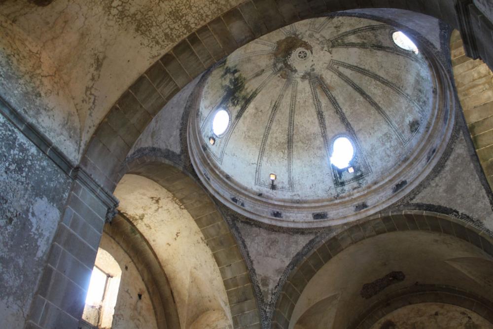 La construcción tiene bastante altura, un cúpula semiesférica en el centro y bóvedas de cañón en el resto. No tiene tejado, por lo que en exterior se aprecian perfectamente todas estas estructuras. Están tan bien hechas, que sin ningún tipo de cubierta, resisten a duras penas los embates del tiempo